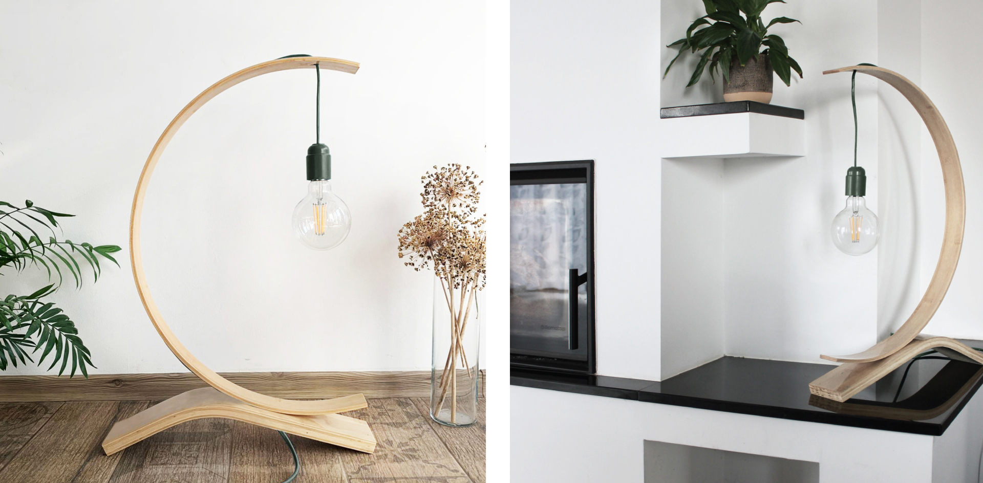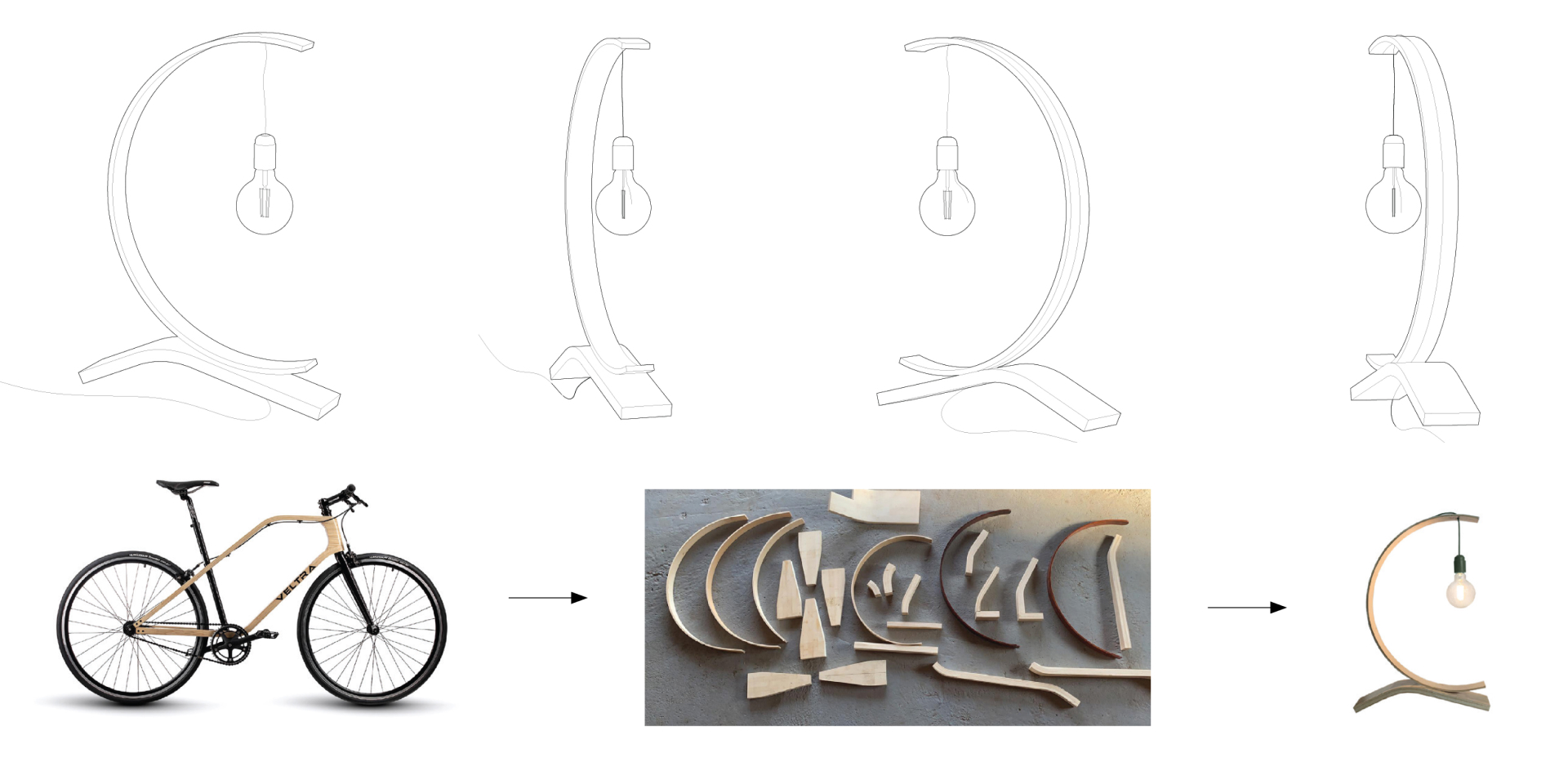 The ‘CERDA’ lamp is made out of the wood / scraps of wood left unused after making the VELTRA bicycle. The wood is adjusted, sanded and finished with clear varnish. Dynamic shapes and beautiful wood texture outline an elegant floor/ low furniture lamp.