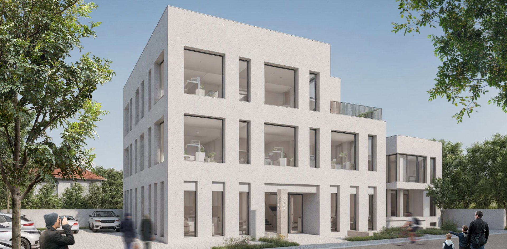 The façade is composed of two distinct registers, reflecting the functions within. On the ground floor, smaller, more discreet windows offer privacy and a sense of intimacy, while the upper levels are characterized by expansive glazing that maximizes daylight and openness, contributing to a transparent and modern identity.