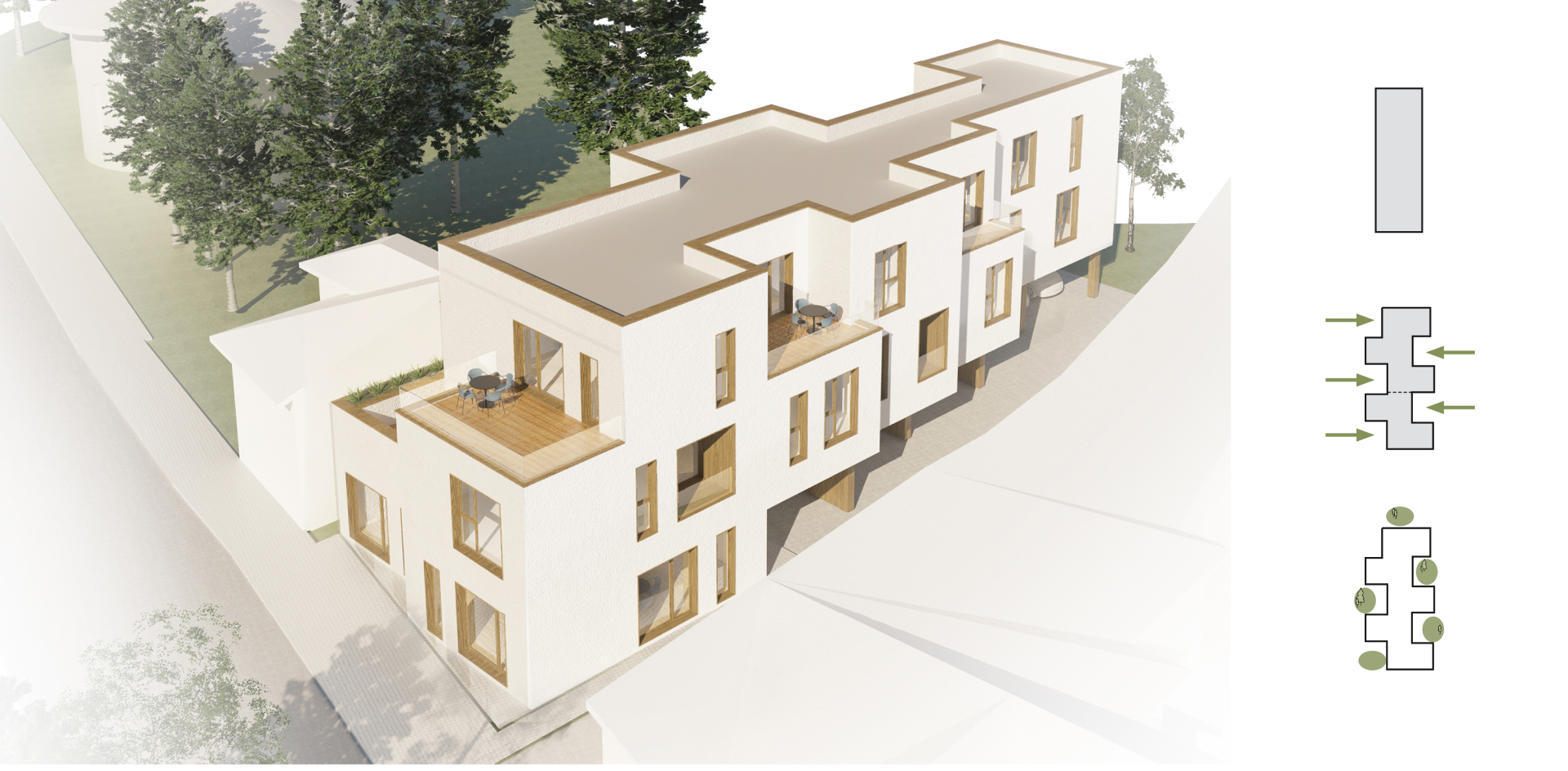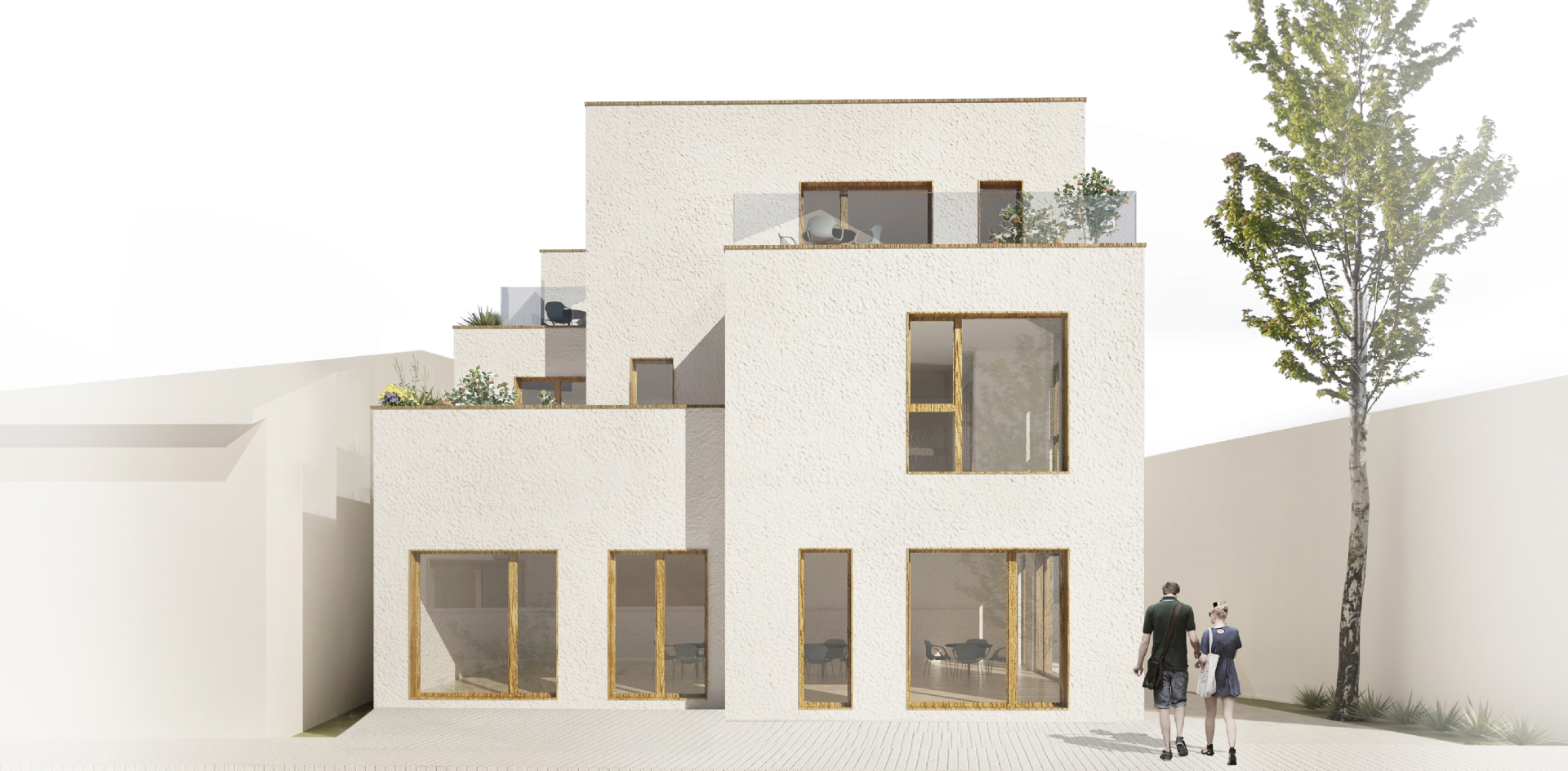 Located in the proximity of a church, the height of the building was a carefully studied aspect. Therefore, the volume of the building sets back from its limits through various terraces. The building shape ensures privacy and intimacy to every terrace and apartment.