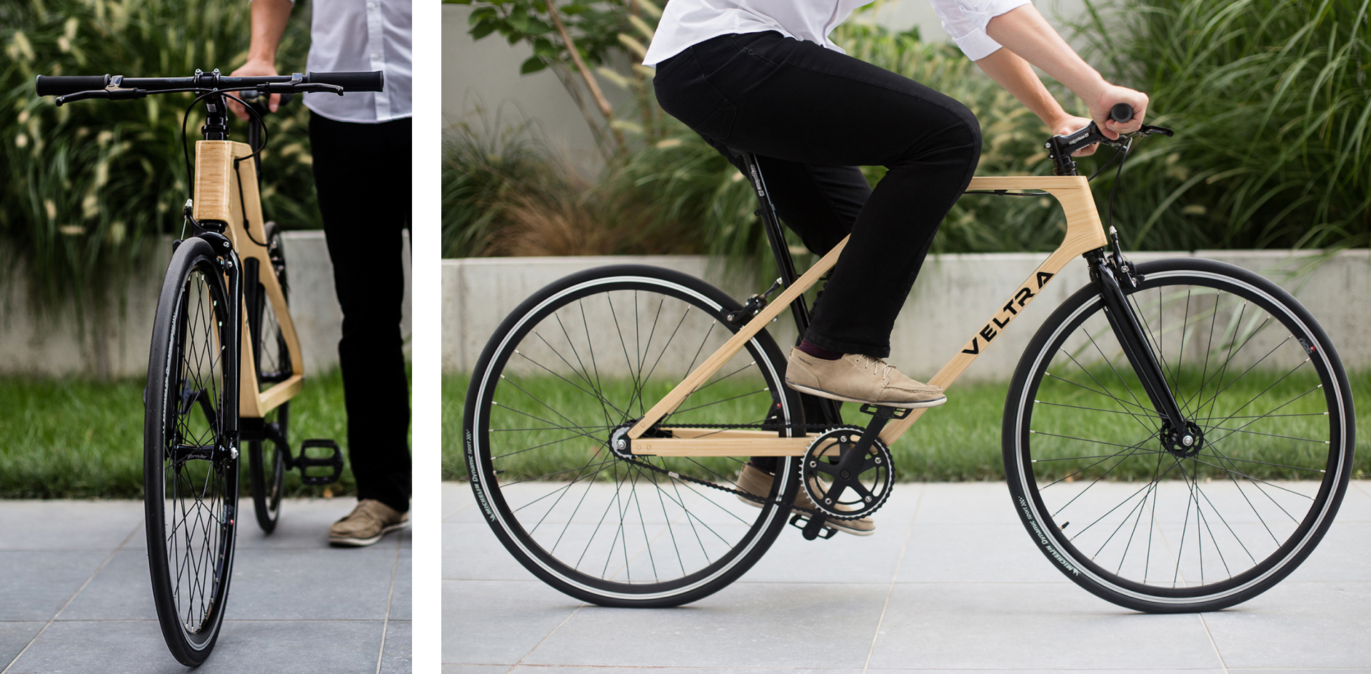 ‘VELTRA’ has a lightweight bamboo frame and an unique design. Bamboo is the perfect material to build a bicycle as it has a high strength-to weight ratio, vibration dampening and sustainable growth. With an athletic handling and a short wheelbase, VELTRA is nimble in traffic and lightning quick on open roads.